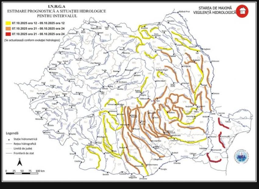 Fenomene prognozate: scurgeri importante pe versanți, torenți și pâraie, viituri rapide pe râurile mici, cu posibile inundații locale creșteri de debite și niveluri cu posibile depășiri ale COTELOR DE APĂRARE.
