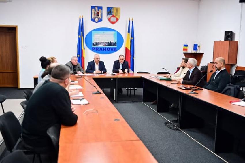 Președintele Virgiliu-Daniel Nanu a coordonat o ședință de lucru la sediul Consiliului Județean Prahova, la care au participat reprezentanții tuturor companiilor angrenate (proiectare, execuție, asistență tehnică, furnizare echipamente) în implementarea Proiectului “Înființare rețea inteligentă distribuție gaze naturale în județul Prahova – comunele Cocorăștii Mislii, Vâlcănești, Cosminele, Dumbrăvești, Vărbilău, Aluniș, Ștefești, Bertea și orașul Slănic”, alături de membrii echipei unității de implementare a proiectului.